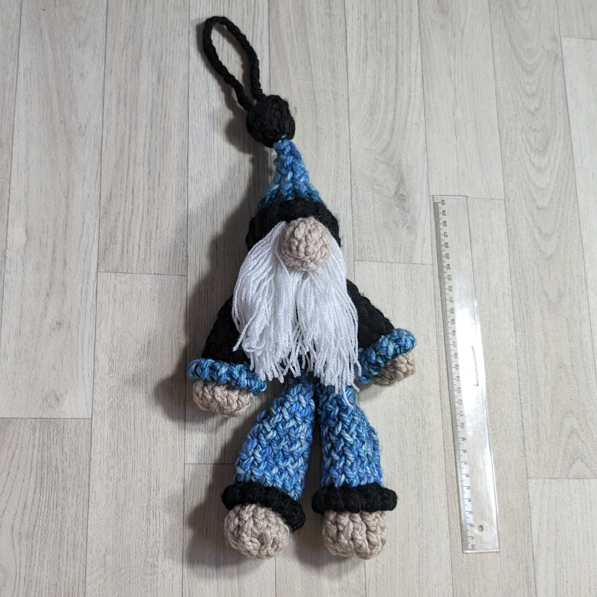 Hand knitted Gonk Dusk, Gnome Decoration. My latest ctreation knitted using super chunky 100% acrylic yarn. The head and body are knitted around a polystyrene ball and the Beard is made with White Baby Yarn.