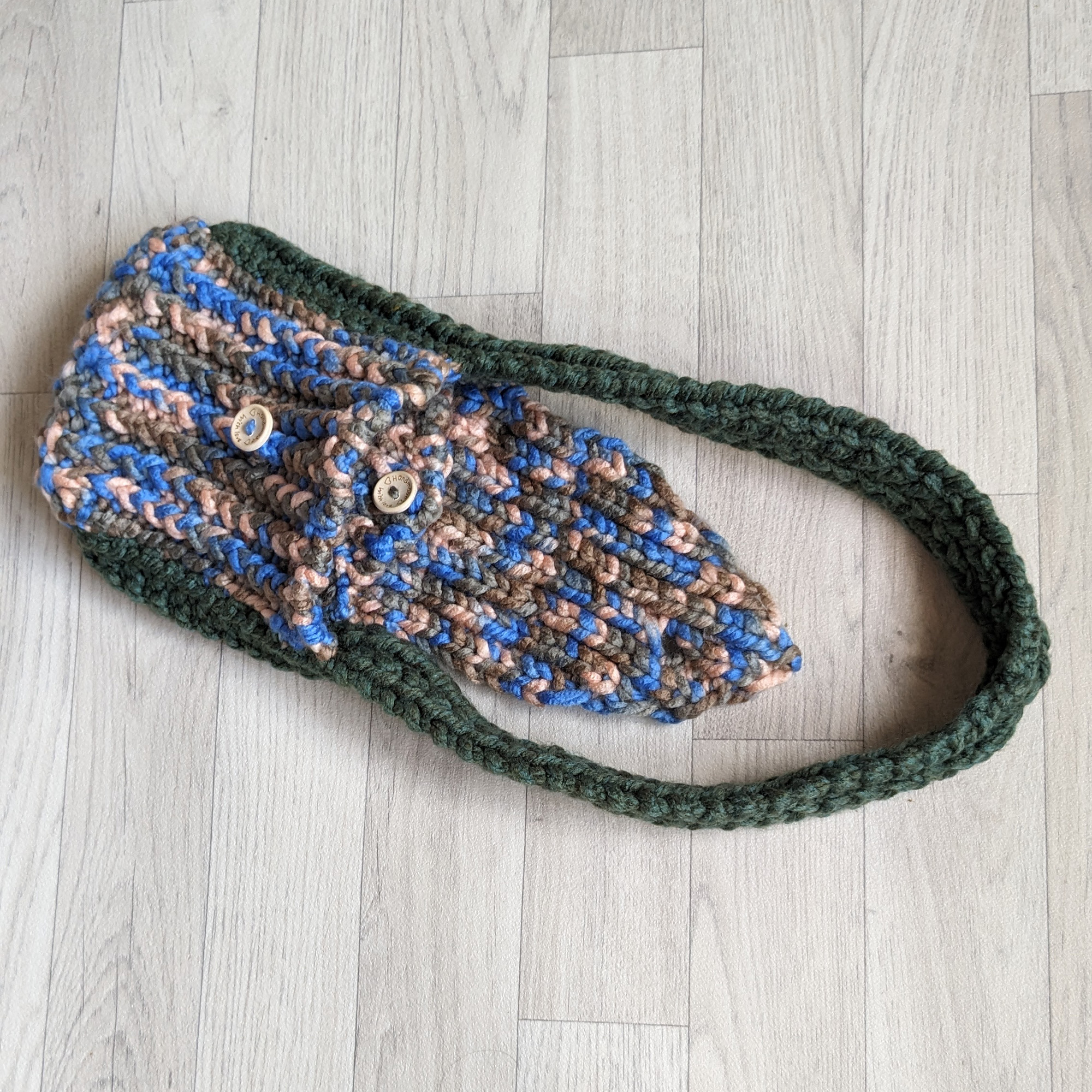 Handbag Sienna – Hand knitted super chunky Handbag. Knitted using super chunky shoulder strap. Knitted with a button fastener and an inside pocket.
