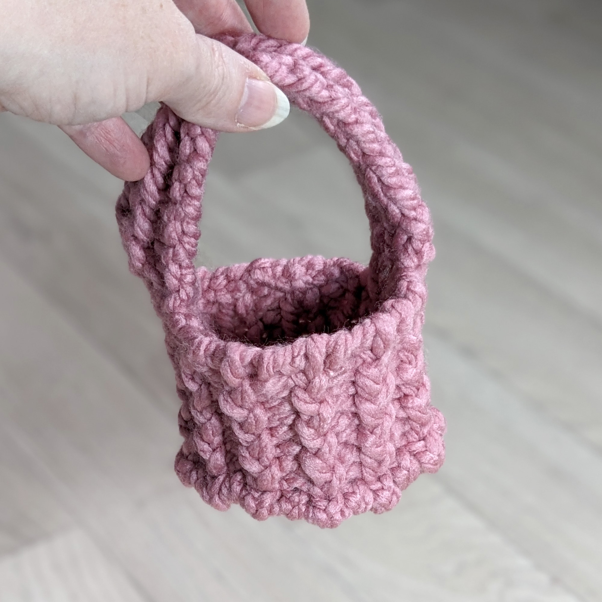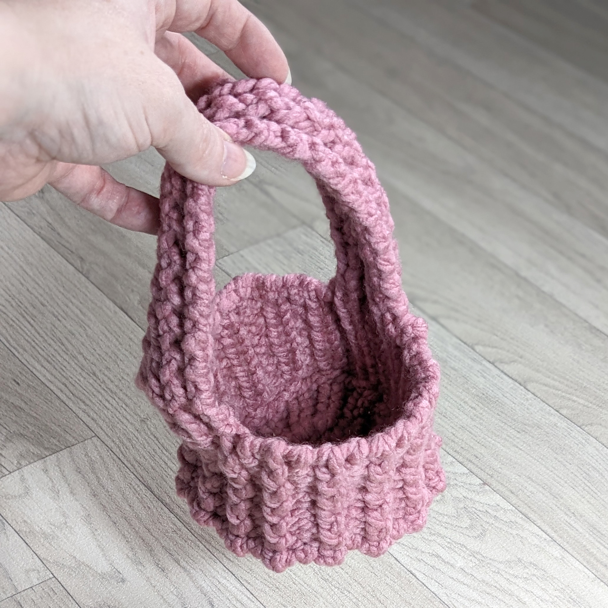 Dusty Pink knitted Mini Baskets decorations. Perfect little baskets for little treats.
