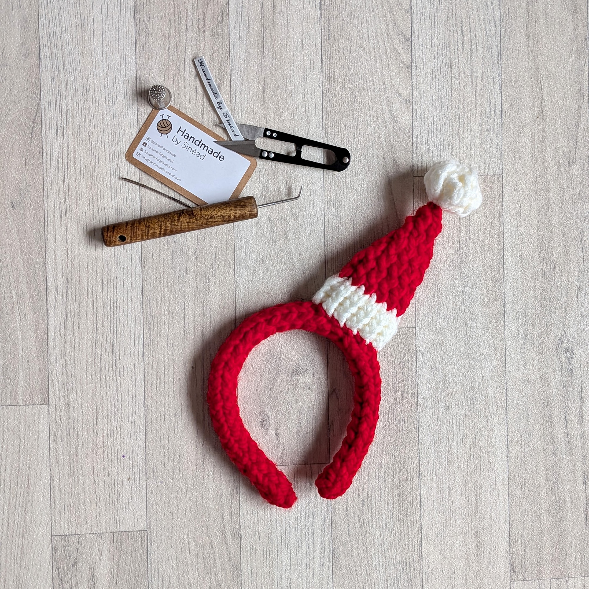 Hand knitted novelty Mini Santa Hairband. Knitted in Classic Red and White. Knitted using super chunky yarn.